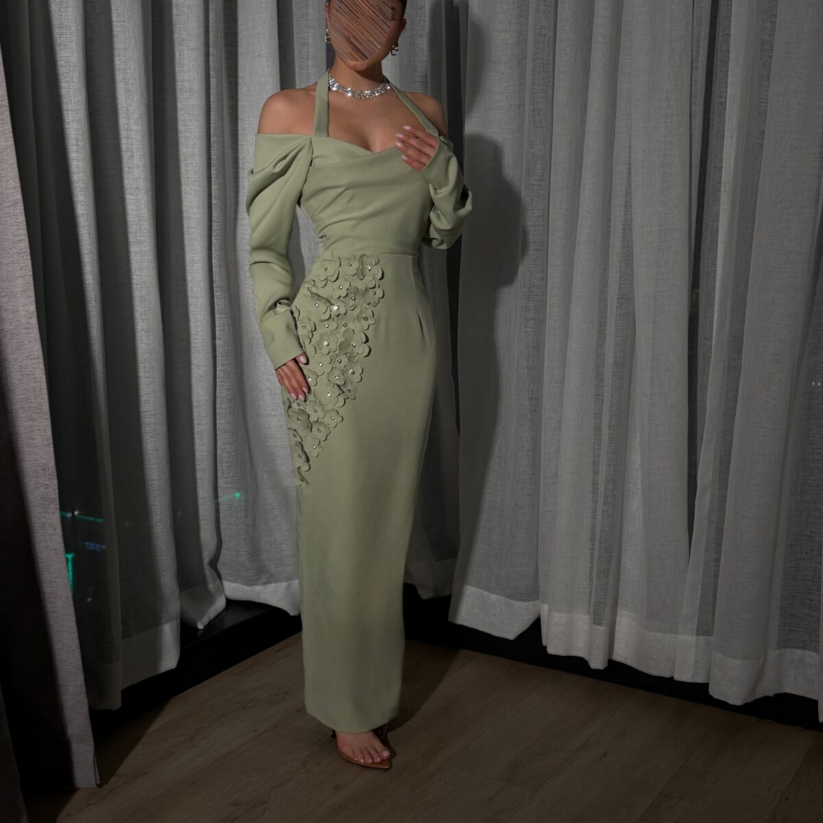 فستان بالورد والشك اليدوى